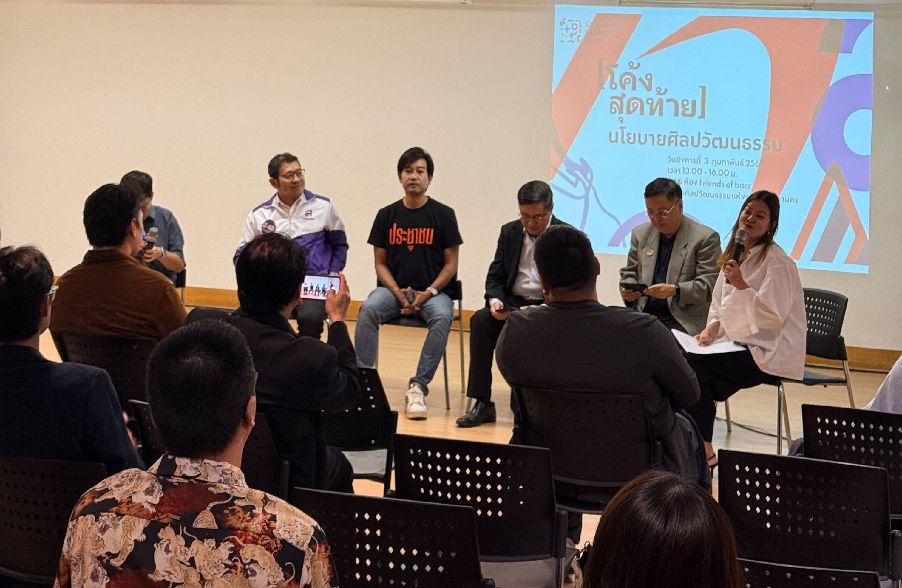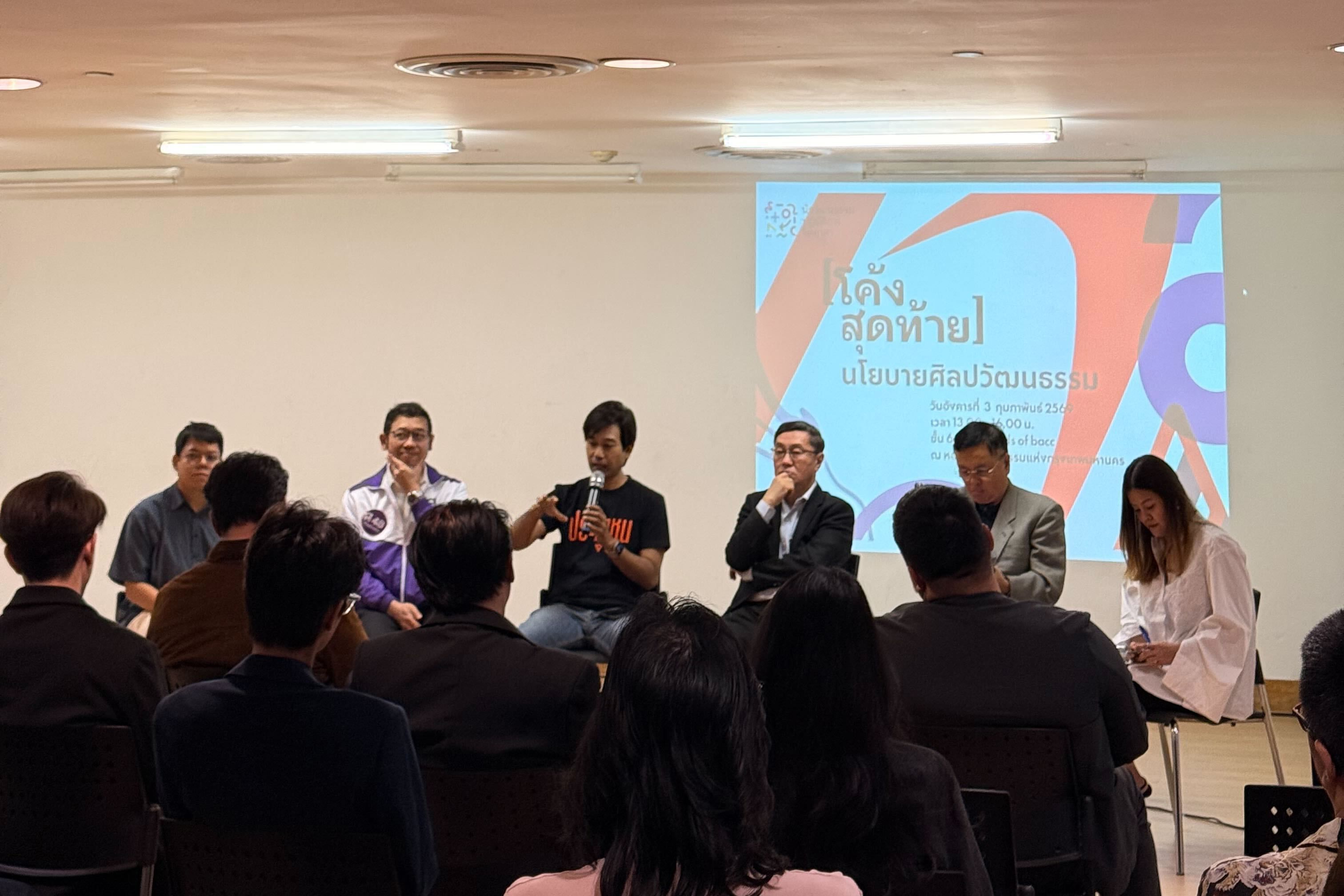 เมื่อวันที่ 3 ก.พ. ที่ผ่านมา GROUNDCONTROL ได้เข้าร่วมฟังเวทีสนทนา [โค้งสุดท้าย] นโยบายศิลปวัฒนธรรม ที่จัดขึ้นโดย กลุ่มนักวัฒนธรรมปฏิบัติการจิตอาสา ซึ่งเปิดพื้นที่ให้คนทำงานศิลปะและประชาชนทั่วไปได้มารับฟัง แลกเปลี่ยน และทำความเข้าใจทิศทางความคิดของแต่ละพรรคการเมืองอย่างใกล้ชิด ว่านโยบายด้านศิลปวัฒนธรรมกำลังถูกมองผ่านมุมไหน และบทบาทของรัฐในโลกสร้างสรรค์ควรเป็นอย่างไรต่อไป