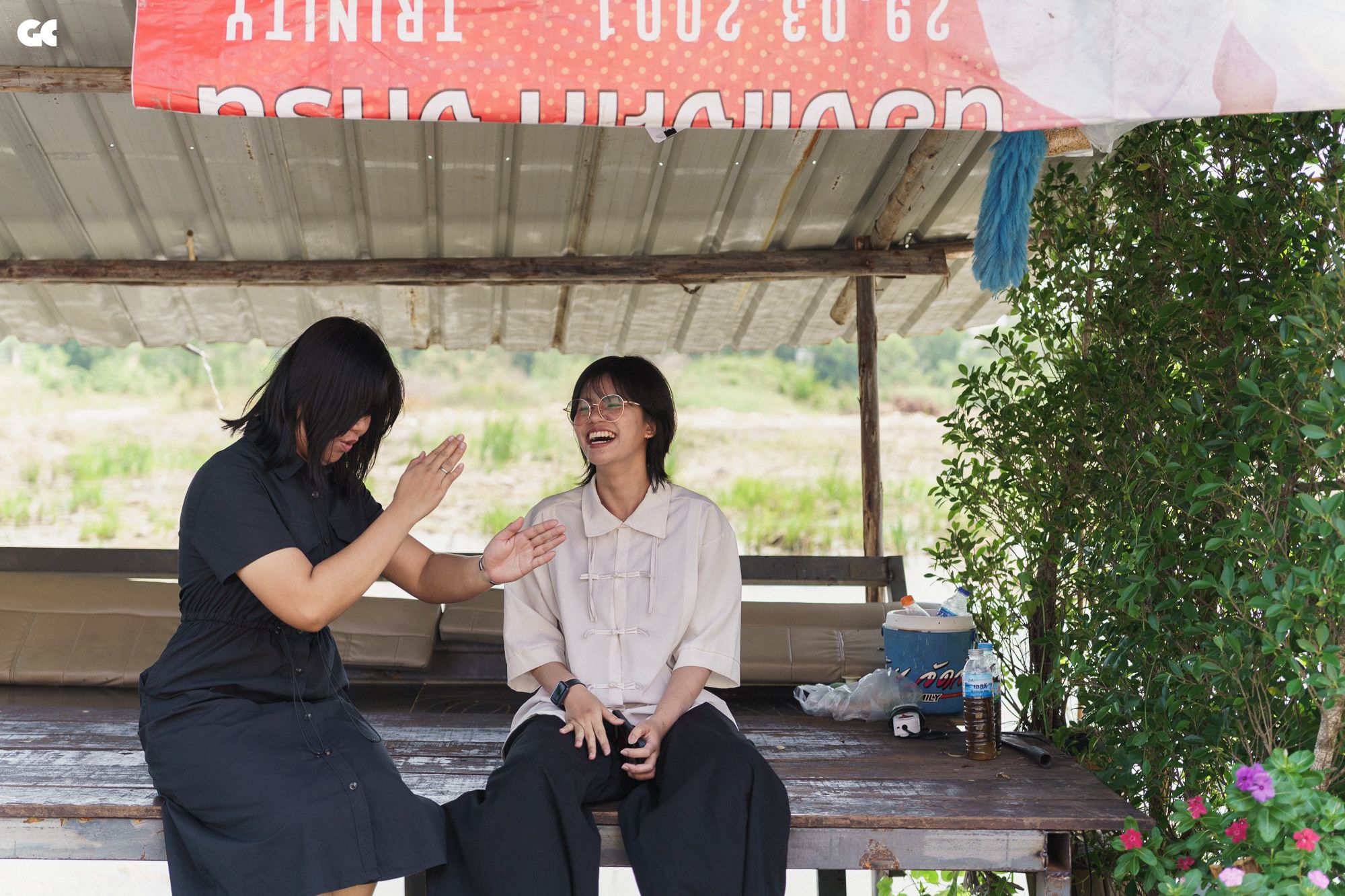 พลอย: แล้วอีกอย่างที่เป็นกิมมิกคือ เราอยากให้คลิปมันสนุก ไม่อยากให้ ผอ. (พี่หนิง - กัญณศมนต์ ภู่ธรรม) ออกมาพูดเชิญแบบทางการ เลยเอาคลิปที่ ผอ. เคยตีลังกาไว้มาใช้ บอกน้องเลยว่าตัดยังไงก็ได้ แต่คลิปสุดท้ายต้องมีช็อตนี้นะ