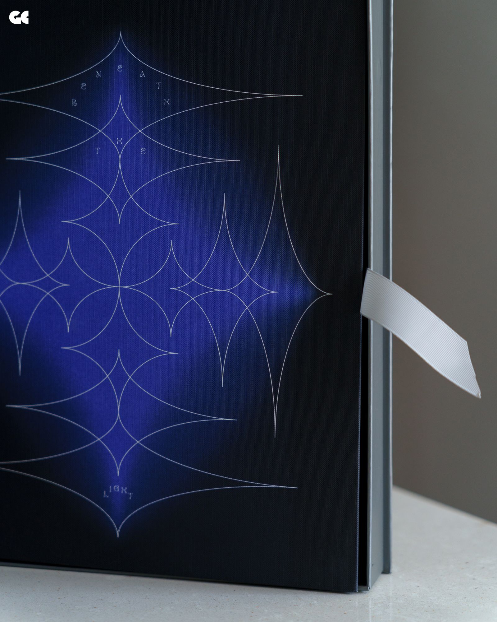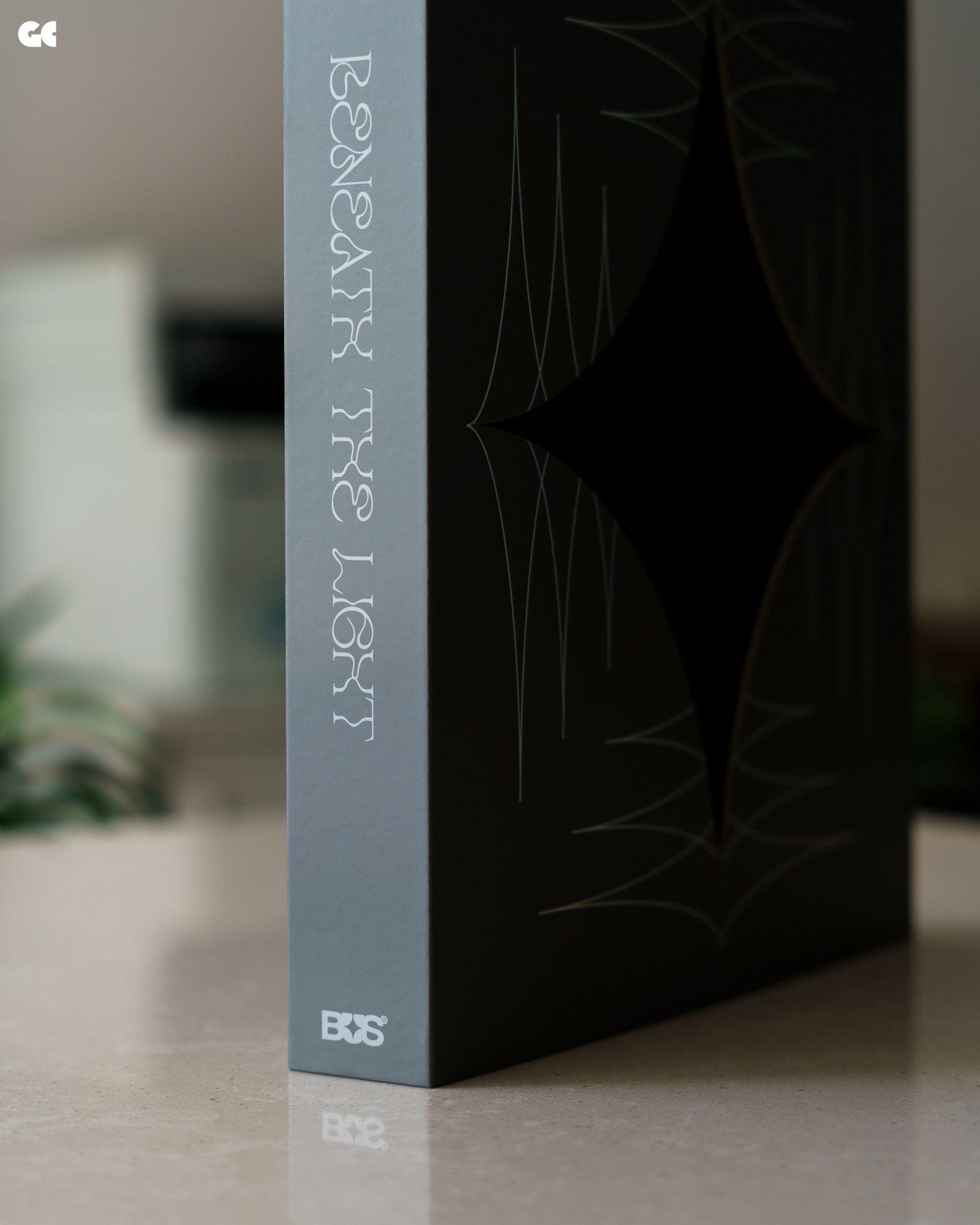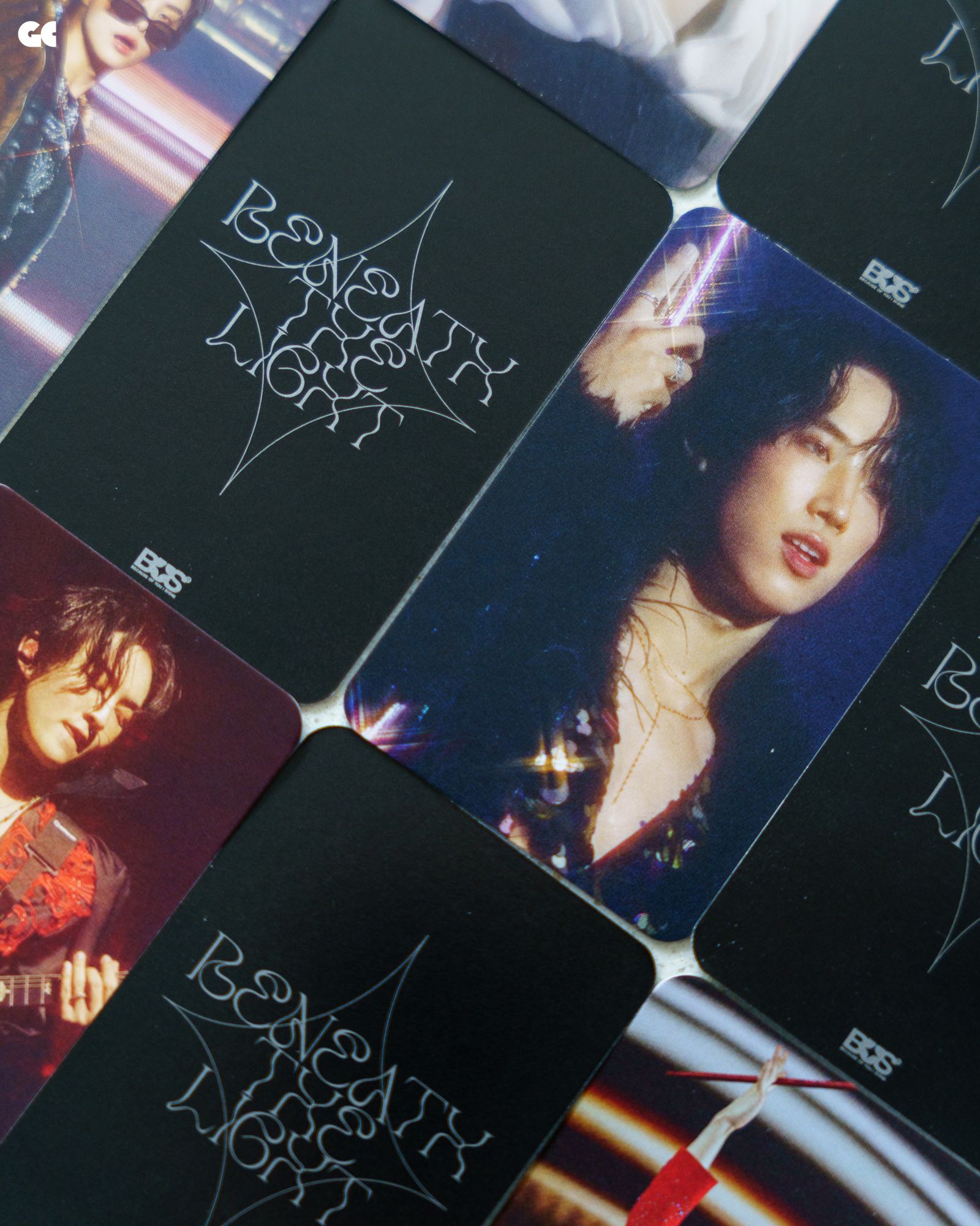 จาก Tagline นี้ ได้นำพาไอเดียของพวกเราไปสู่คอนเซ็ปต์ ‘LIGHT AS THE ECHO FROM BUS TO BEUS.’ ที่ทาง GC ตีความกันต่อว่า ‘แสงก็เปรียบเหมือนเสียงดนตรี’ ไม่ได้หายไปหรือสิ้นสุดลง แต่ยังคงสะท้อน แทรกซึม และก้องดังอยู่ท่ามกลางการดำรงอยู่ของทุกสิ่ง จนท้ายที่สุดก็กลายเป็นความทรงจำที่สลักอยู่ในคลื่นความถี่ เราเลยดีไซน์ให้ตัวกล่องด้านนอกและหน้าปก PHOTOBOOK หลักให้เป็นรูป Shine อันเป็นเอกลักษณ์ของวง พร้อมเพิ่มกิมมิกพิเศษด้วยการเจาะฉลุลวดลาย shine ตรงกลางกล่อง ที่เผยให้เห็นตัวเล่ม PHOTOBOOK ด้านใน มาพร้อมกับการ์ดสองด้าน ที่เปิดโอกาสให้แฟน ๆ สามารถสลับโชว์ได้สองเวอร์ชัน ทั้งแบบชื่อหนังสือหรือแบบภาพวง BUS บนเวที