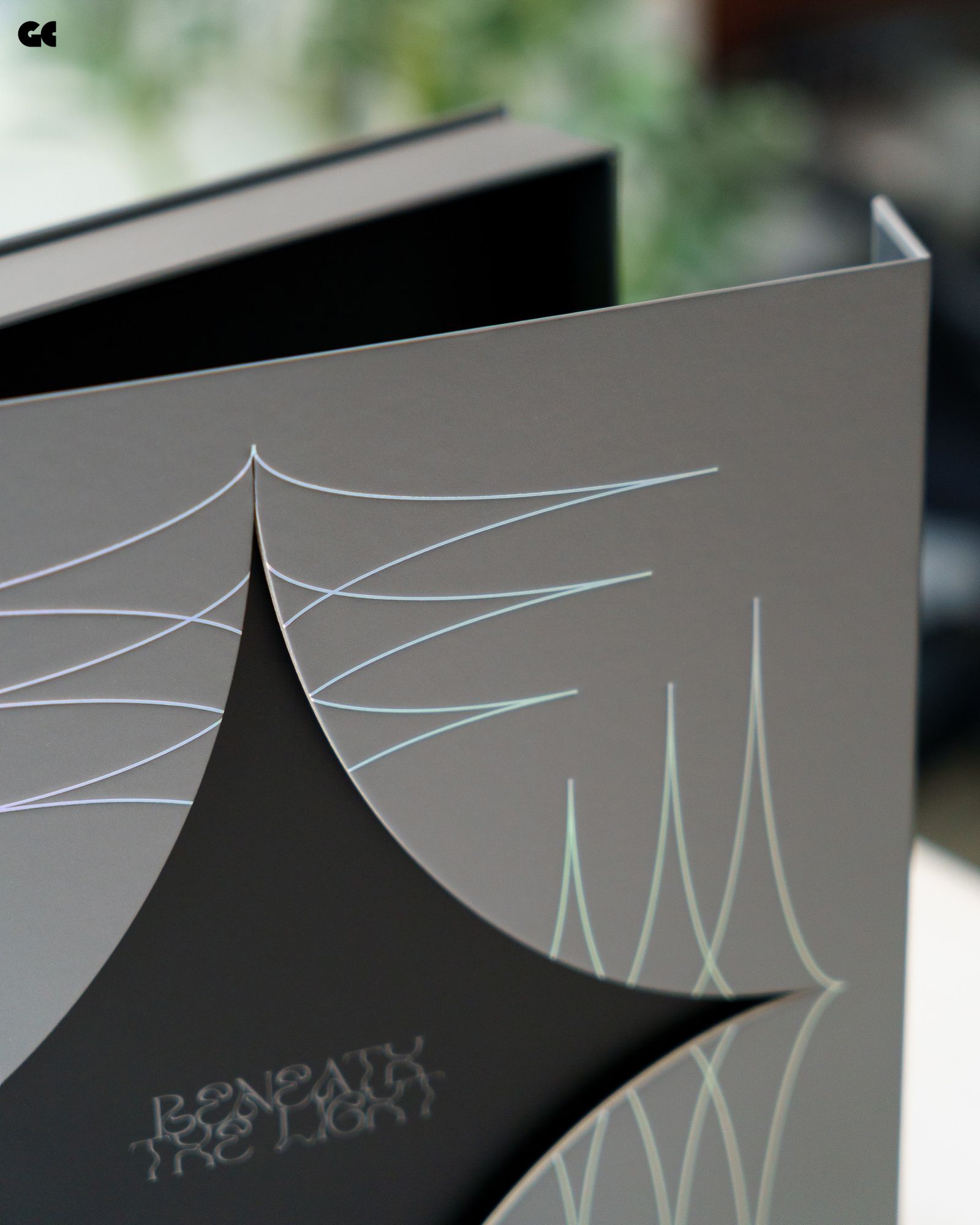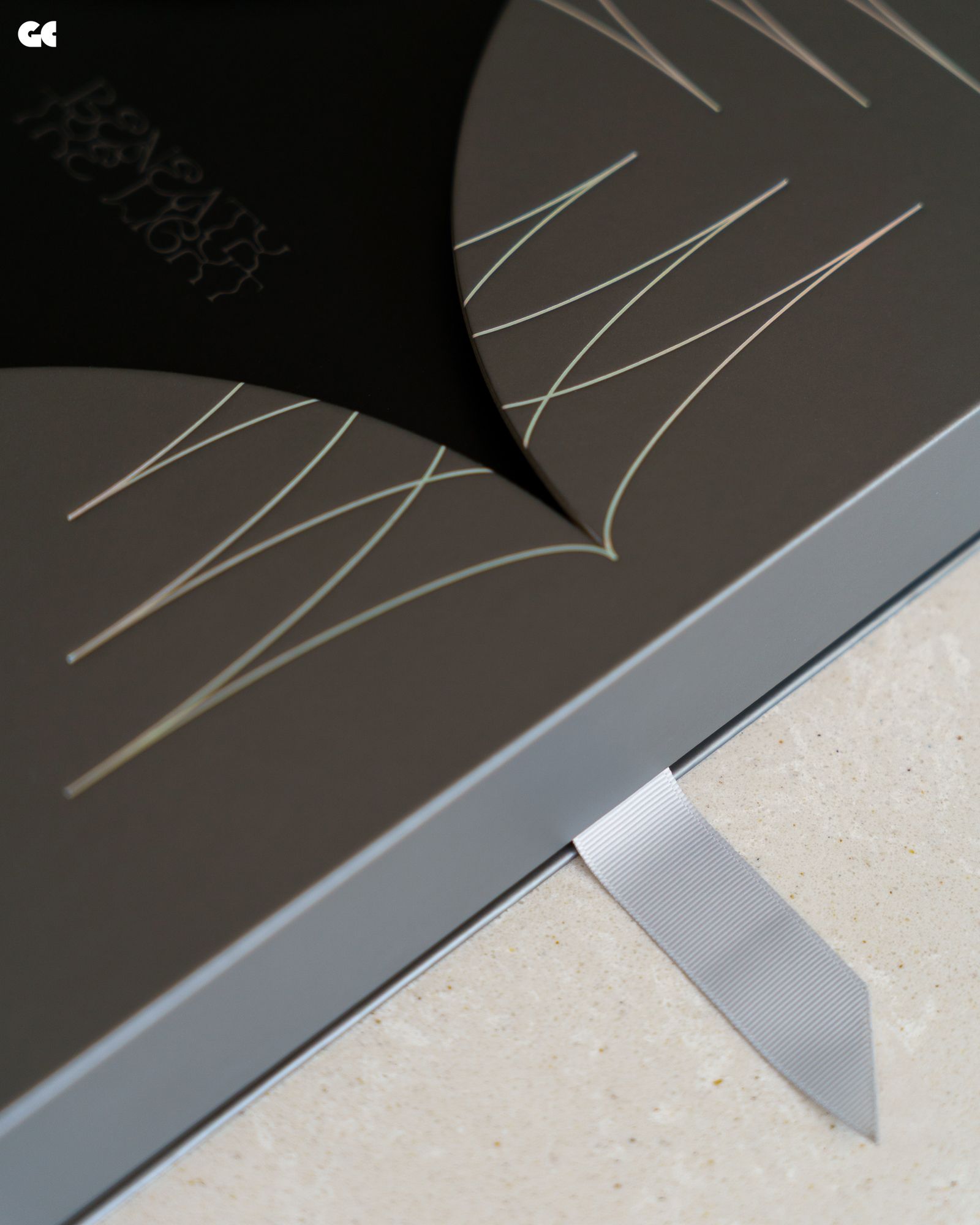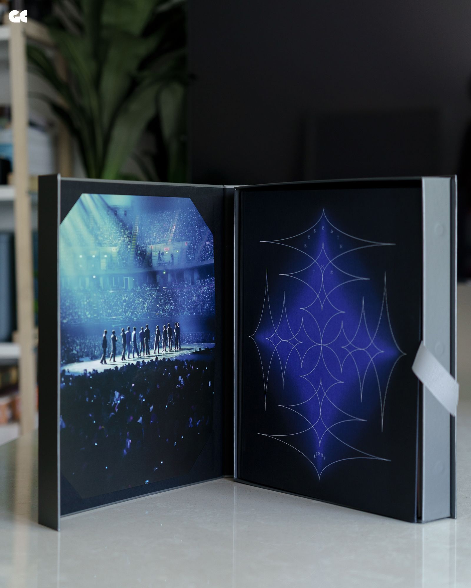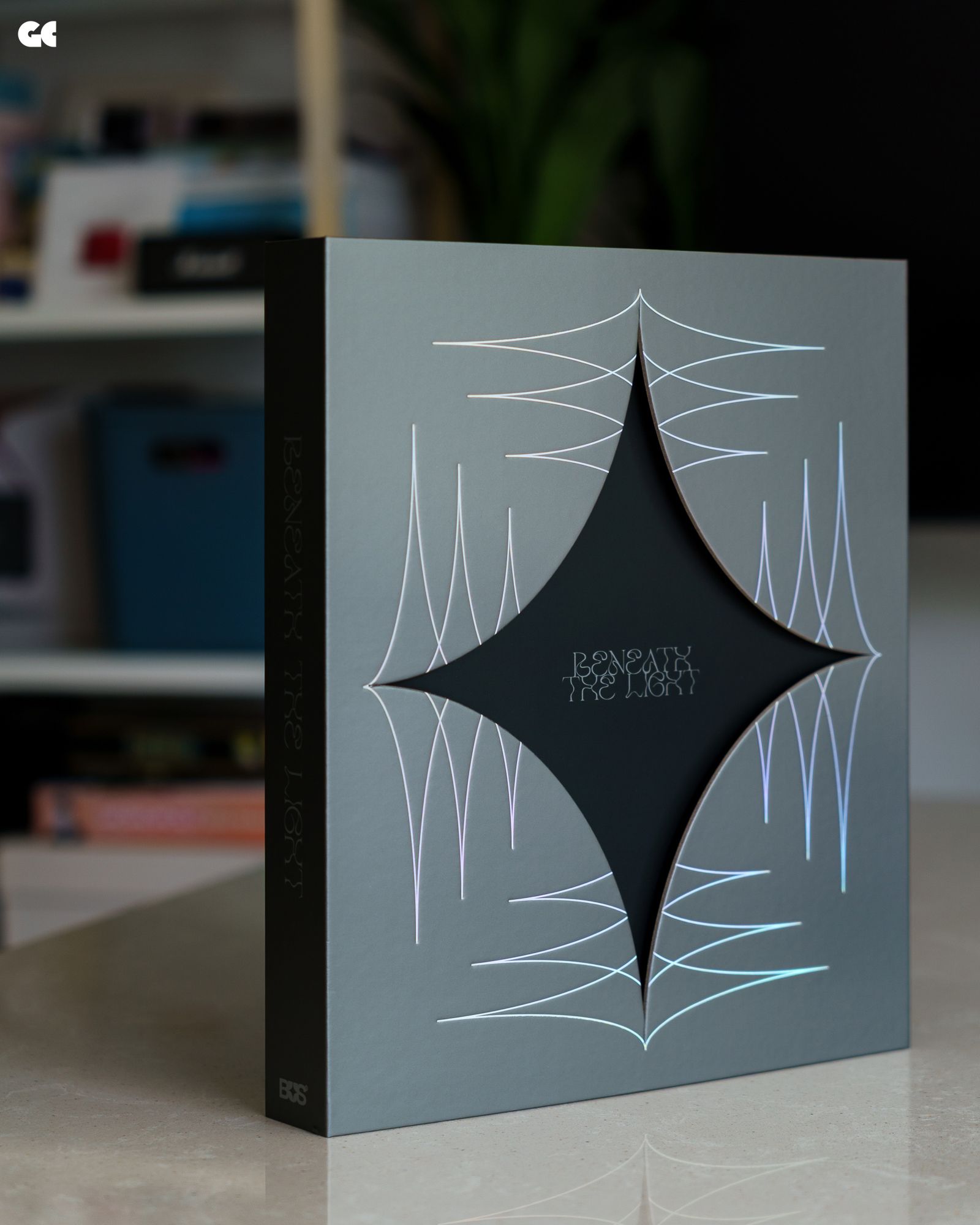 จาก Tagline นี้ ได้นำพาไอเดียของพวกเราไปสู่คอนเซ็ปต์ ‘LIGHT AS THE ECHO FROM BUS TO BEUS.’ ที่ทาง GC ตีความกันต่อว่า ‘แสงก็เปรียบเหมือนเสียงดนตรี’ ไม่ได้หายไปหรือสิ้นสุดลง แต่ยังคงสะท้อน แทรกซึม และก้องดังอยู่ท่ามกลางการดำรงอยู่ของทุกสิ่ง จนท้ายที่สุดก็กลายเป็นความทรงจำที่สลักอยู่ในคลื่นความถี่ เราเลยดีไซน์ให้ตัวกล่องด้านนอกและหน้าปก PHOTOBOOK หลักให้เป็นรูป Shine อันเป็นเอกลักษณ์ของวง พร้อมเพิ่มกิมมิกพิเศษด้วยการเจาะฉลุลวดลาย shine ตรงกลางกล่อง ที่เผยให้เห็นตัวเล่ม PHOTOBOOK ด้านใน มาพร้อมกับการ์ดสองด้าน ที่เปิดโอกาสให้แฟน ๆ สามารถสลับโชว์ได้สองเวอร์ชัน ทั้งแบบชื่อหนังสือหรือแบบภาพวง BUS บนเวที