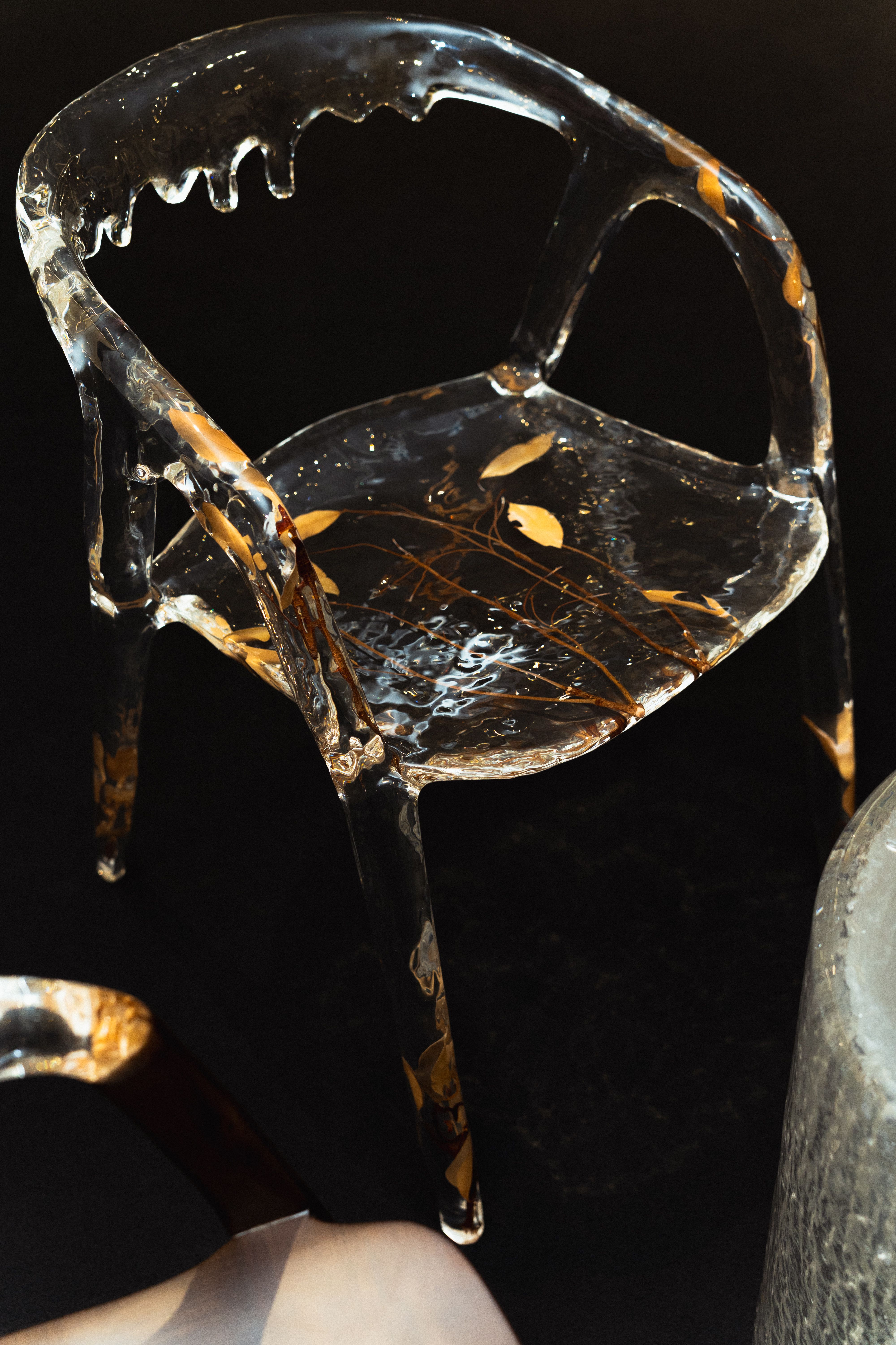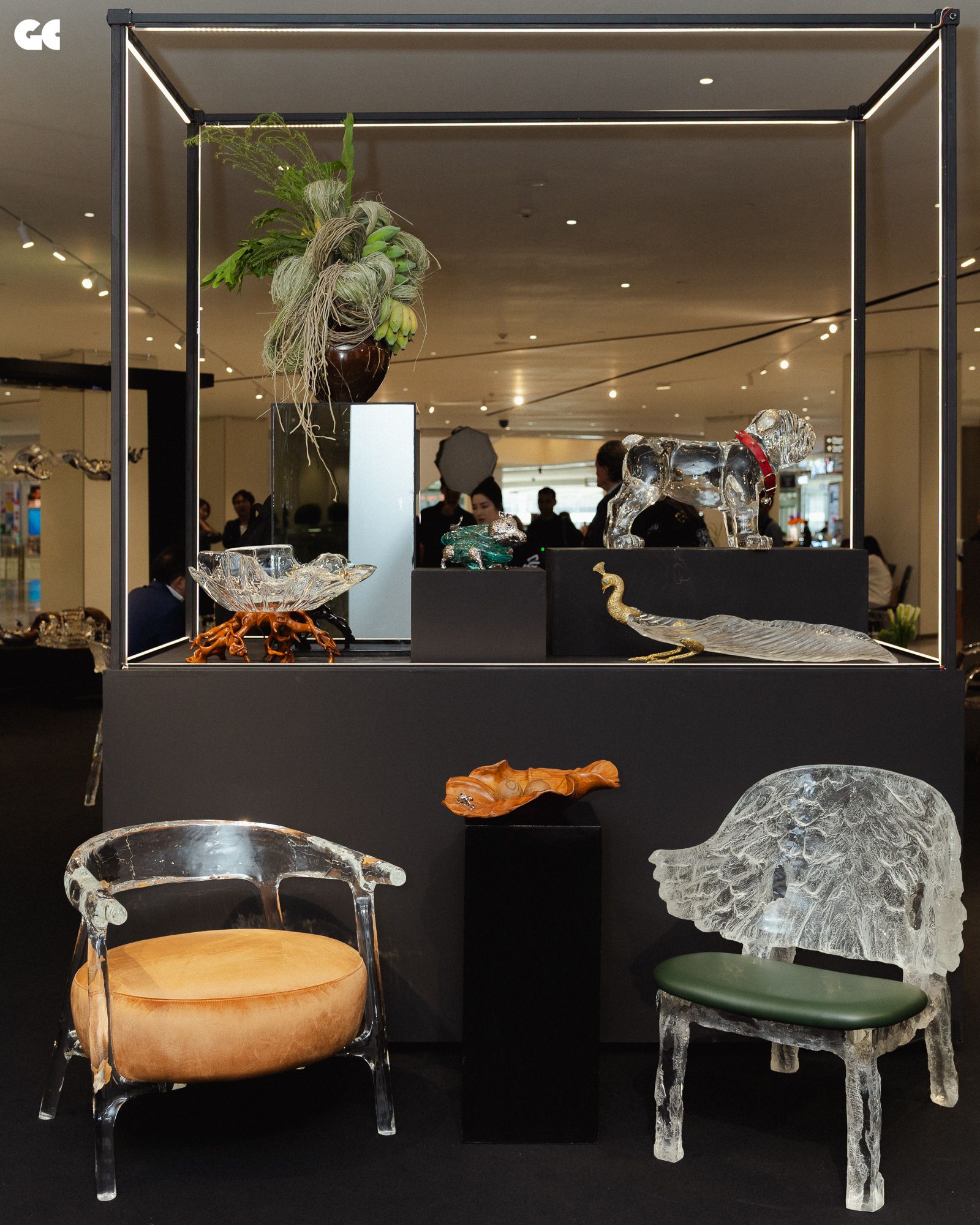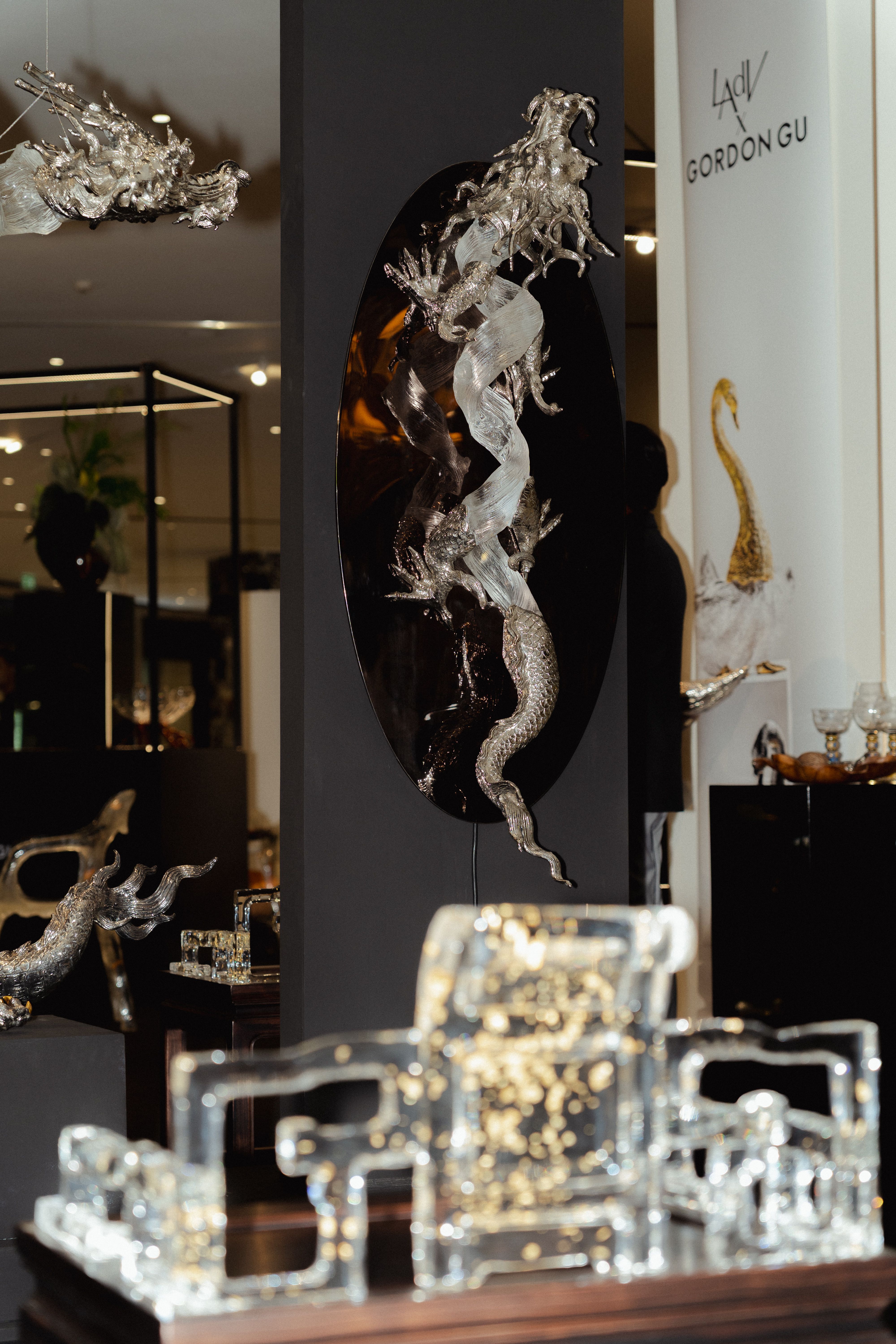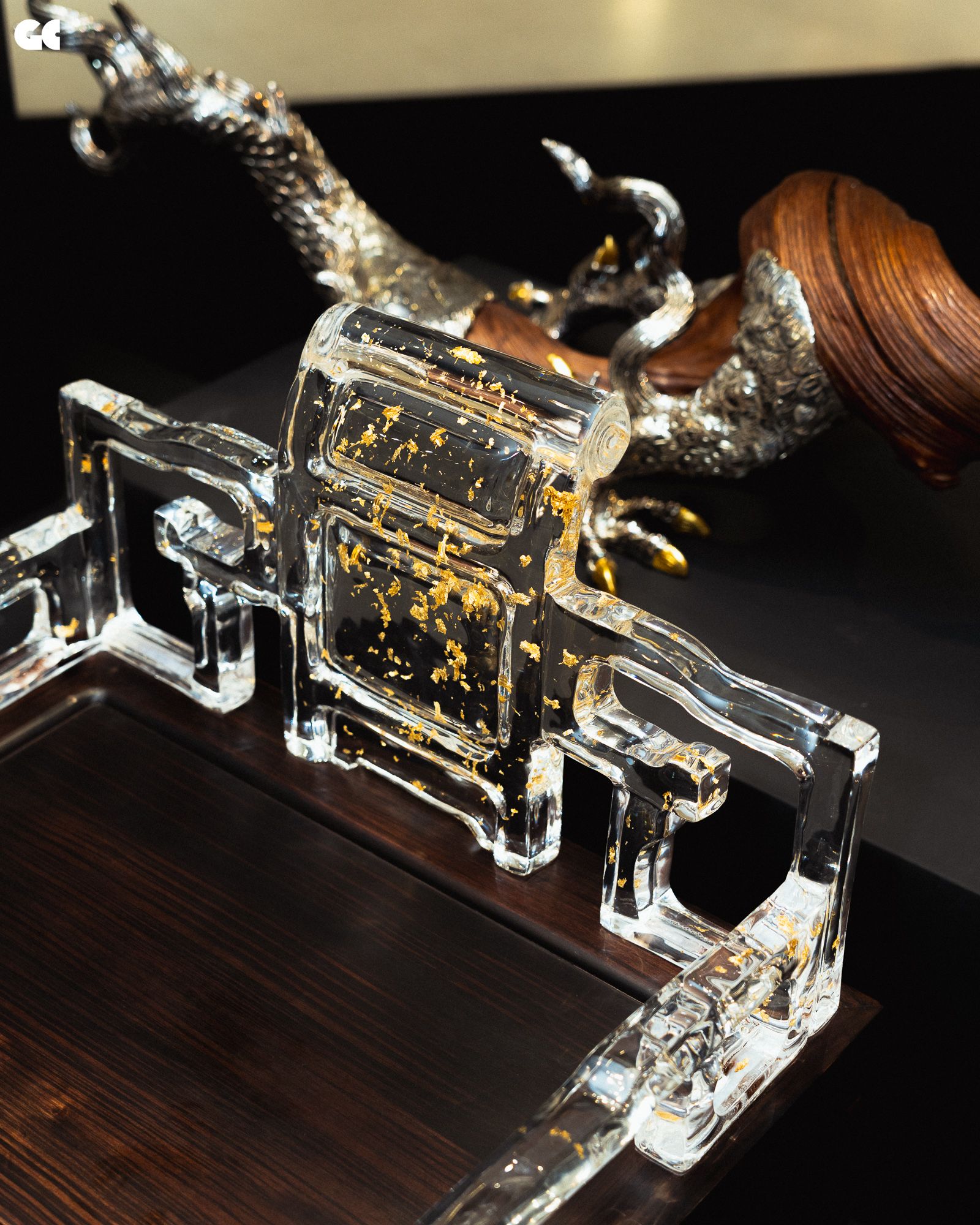 หนึ่งในจุดเด่นสำคัญของ Gordon Gu ที่ก่อตั้งโดย กู่ ไห่หลง คือวัสดุที่เขาพัฒนาขึ้นเอง วัสดุชนิดนี้เป็นเรซินวิศวกรรมที่ผ่านการปรับโครงสร้างระดับโมเลกุล มีลักษณะคล้ายคริสตัล โปร่งแสง และสามารถขึ้นรูปได้อย่างอิสระ แต่ในขณะเดียวกันก็มีความแข็งแรงและเป็นมิตรต่อสิ่งแวดล้อม สำหรับ Lotus Arts de Vivre ซึ่งเป็นแบรนด์ที่มีชื่อเสียงจากการใช้วัสดุธรรมชาติ การทดลองนำวัสดุร่วมสมัยเช่นนี้มาผสมกับภาษาการออกแบบของตัวเองจึงเหมือนการเปิดพื้นที่ทดลองใหม่ การนำวัสดุจากสองโลก ทั้งโลกของธรรมชาติและโลกของเทคโนโลยี มาหลอมรวมกัน จึงกลายเป็นแนวคิดหลักของคอลเลกชัน และนำไปสู่ชื่อ “The Alchemy of Art” ซึ่งสื่อถึงกระบวนการเล่นแร่แปรธาตุ การทดลองผสมสิ่งต่าง ๆ เพื่อให้เกิดสิ่งใหม่ที่ไม่เคยมีมาก่อน